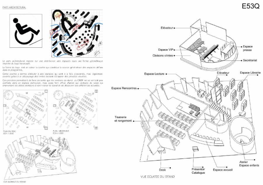 Le parti architectural repose sur une distribution des espaces sous une forme géométrique inspirée du logo handicapé.